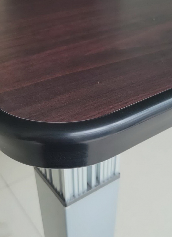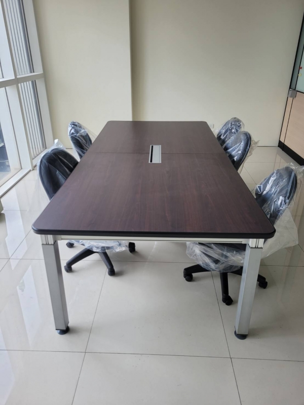 桌面分兩塊不含擺設物品及會議椅 桌面厚3cm/銀色烤漆腳/附毛刷盒*1 本產品為台灣製造,接單生產7~12工作天(非庫存品)