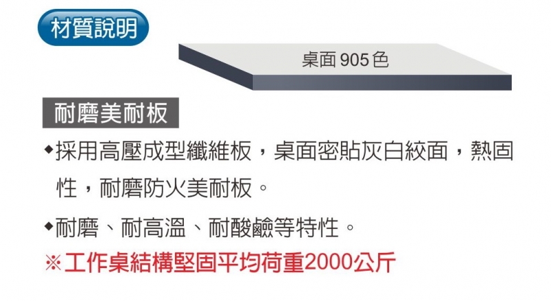 採用高壓成型纖維板,桌面密貼灰白絞面,熱固性,耐磨美耐板